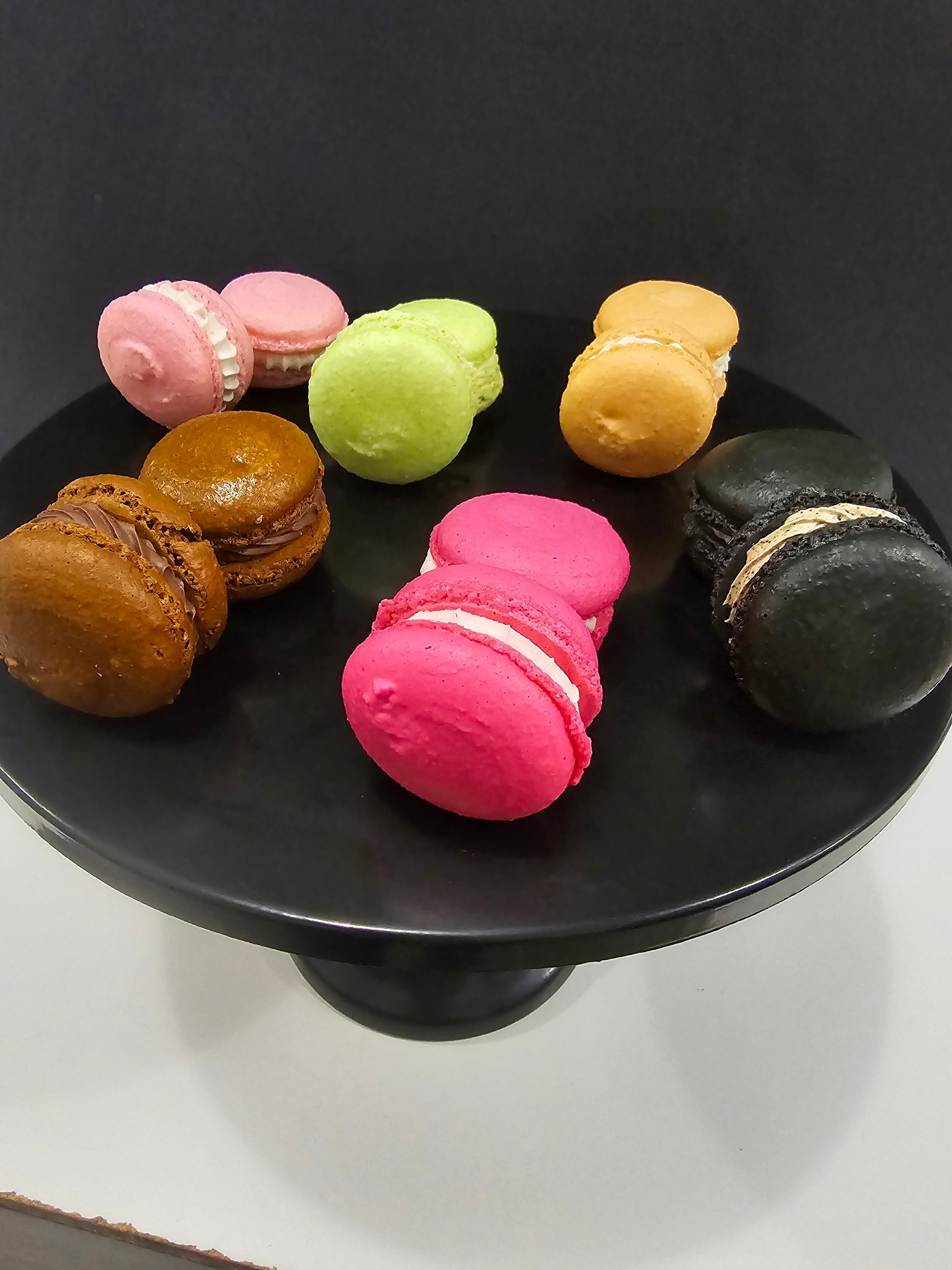 Nos magnifiques macarons sont fait à la main, entièrement avec des saveurs et des couleurs éclatantes. Délectez-vous de ces pettes douceurs réconfortantes, garnies de notre crème au beurre divinement fouettée et aromatisée d'une de nos 24 saveurs.